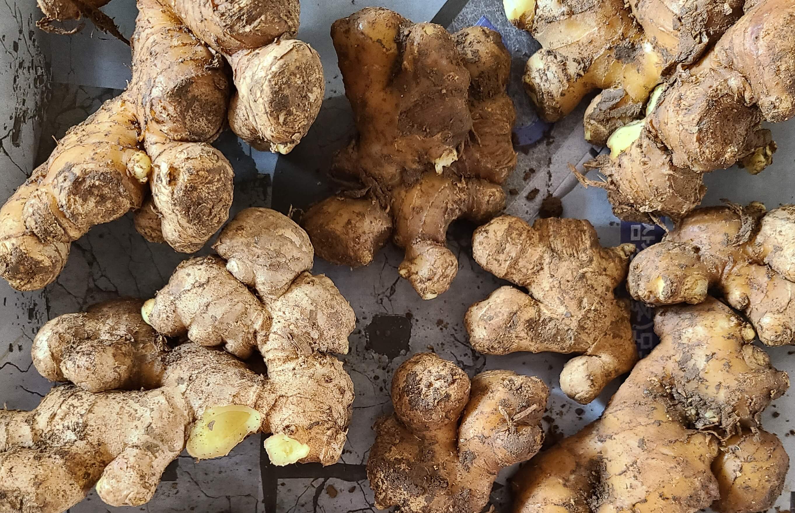씨 생강 싹 틔우는 방법은 싱싱하고 터짐이 없으며 손으로 잘랐을 때 소리가 맑고 하얀 씨눈이 보이는 생강을 선별하여 사용합니다.