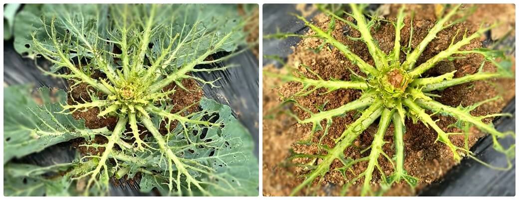 어린 모종은 생장점을 가해할 경우 상품성이 없어지므로 정식 초기부터 방제에 힘쓰는 것이 좋습니다.