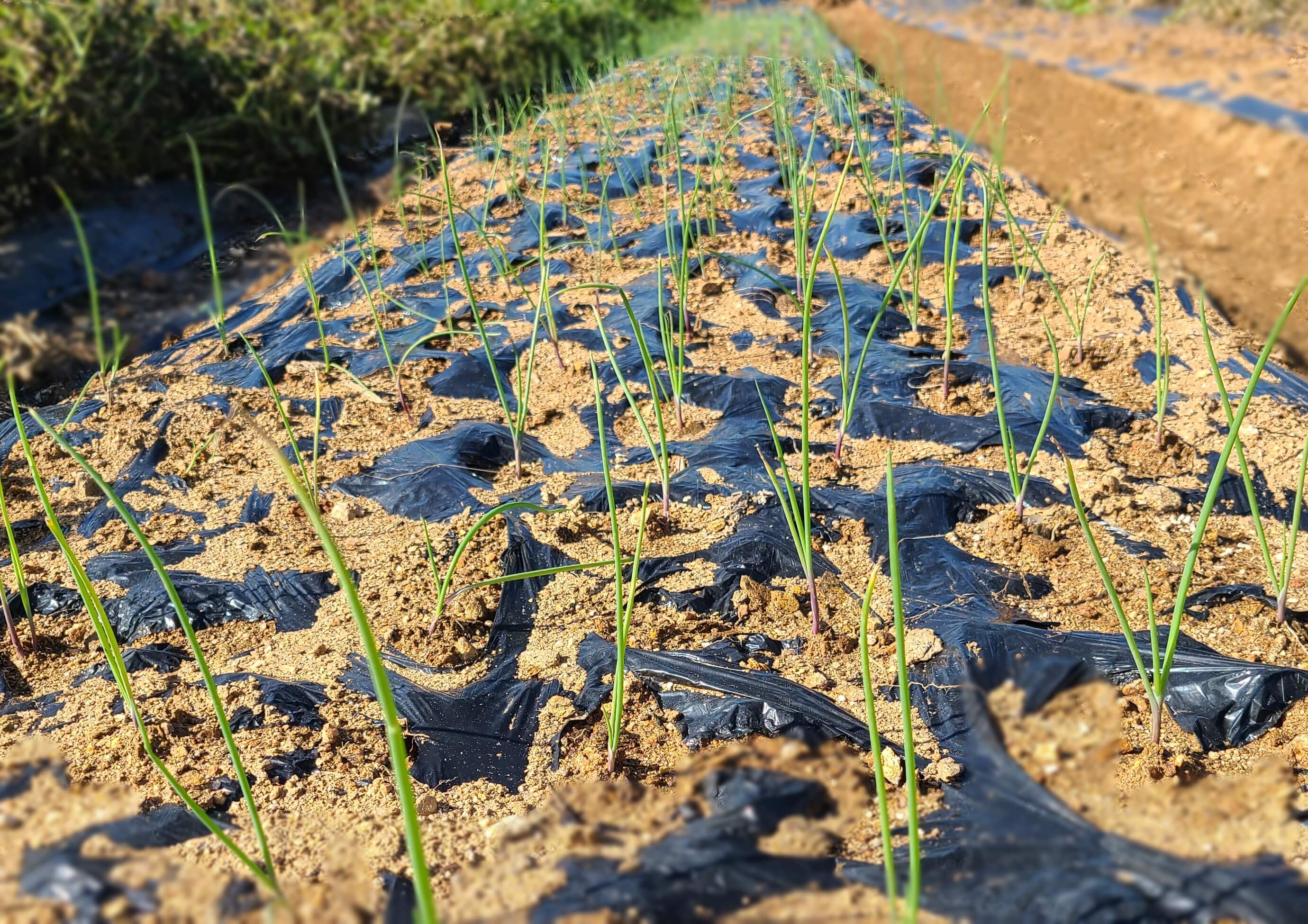 양파를 재배할 때 비닐을 덮어주면 정식 후에 뿌리의 잘 내리고 생육이 촉진되어 수량이 많아지는 효과가 있습니다. 또한 수확 시기를 앞당기는 효과도 있습니다.