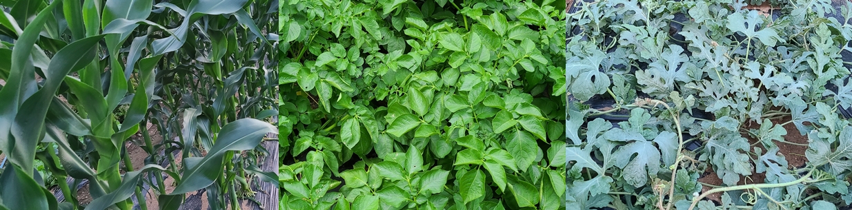 고추, 토마토, 가지, 수박, 참외, 오이, 호박, 고구마, 토란, 생강, 옥수수 등