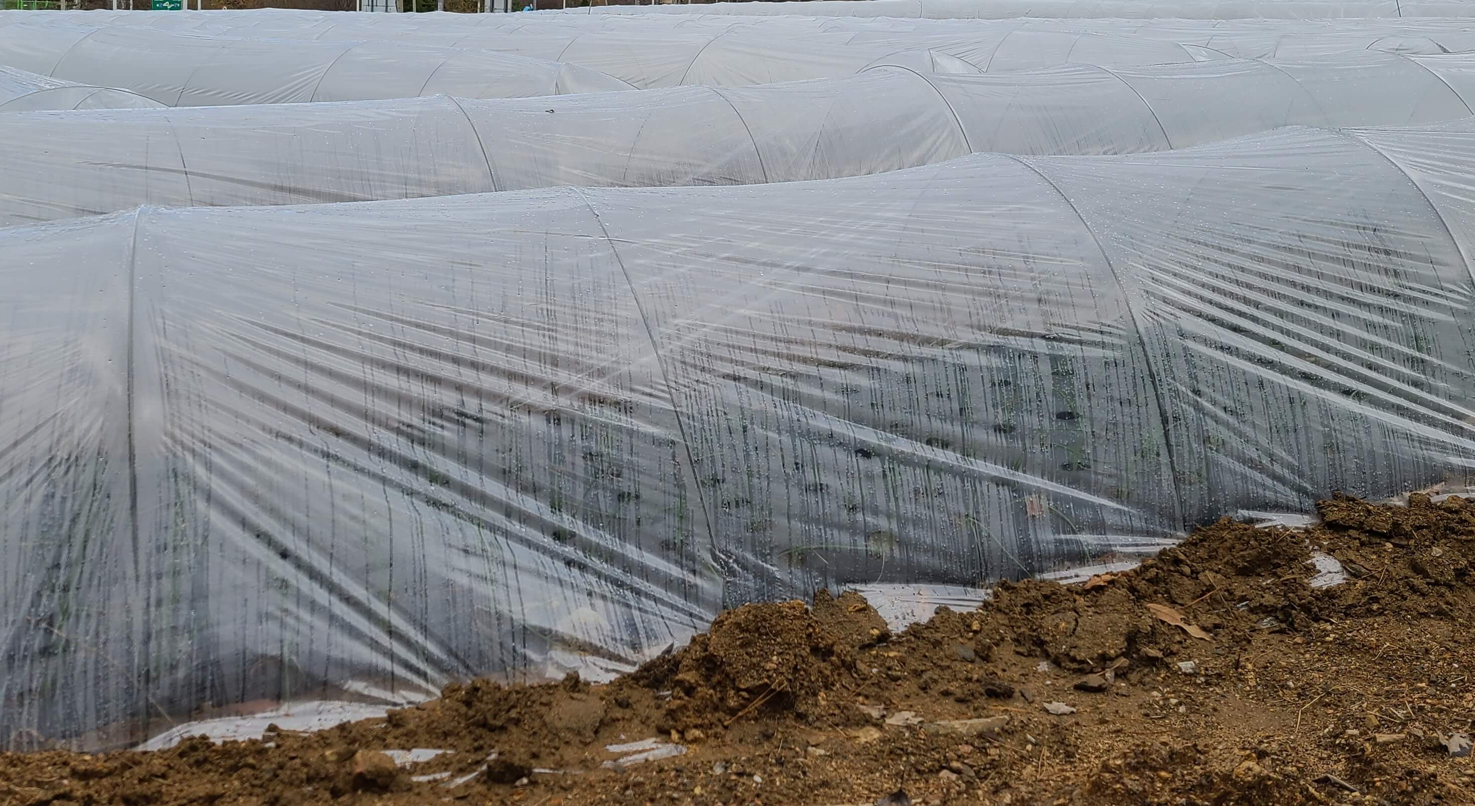 채소재배에서 가장 많이 사용하는 것은 투명 플라스틱 멀칭입니다. 마늘이나 고추의 조숙재배에 주로 이용되는데 지온 상승효과가 대단히 큽니다. 그 외에도 토양의 건조를 방지하여 조기 수량을 크게 높일 수가 있습니다.