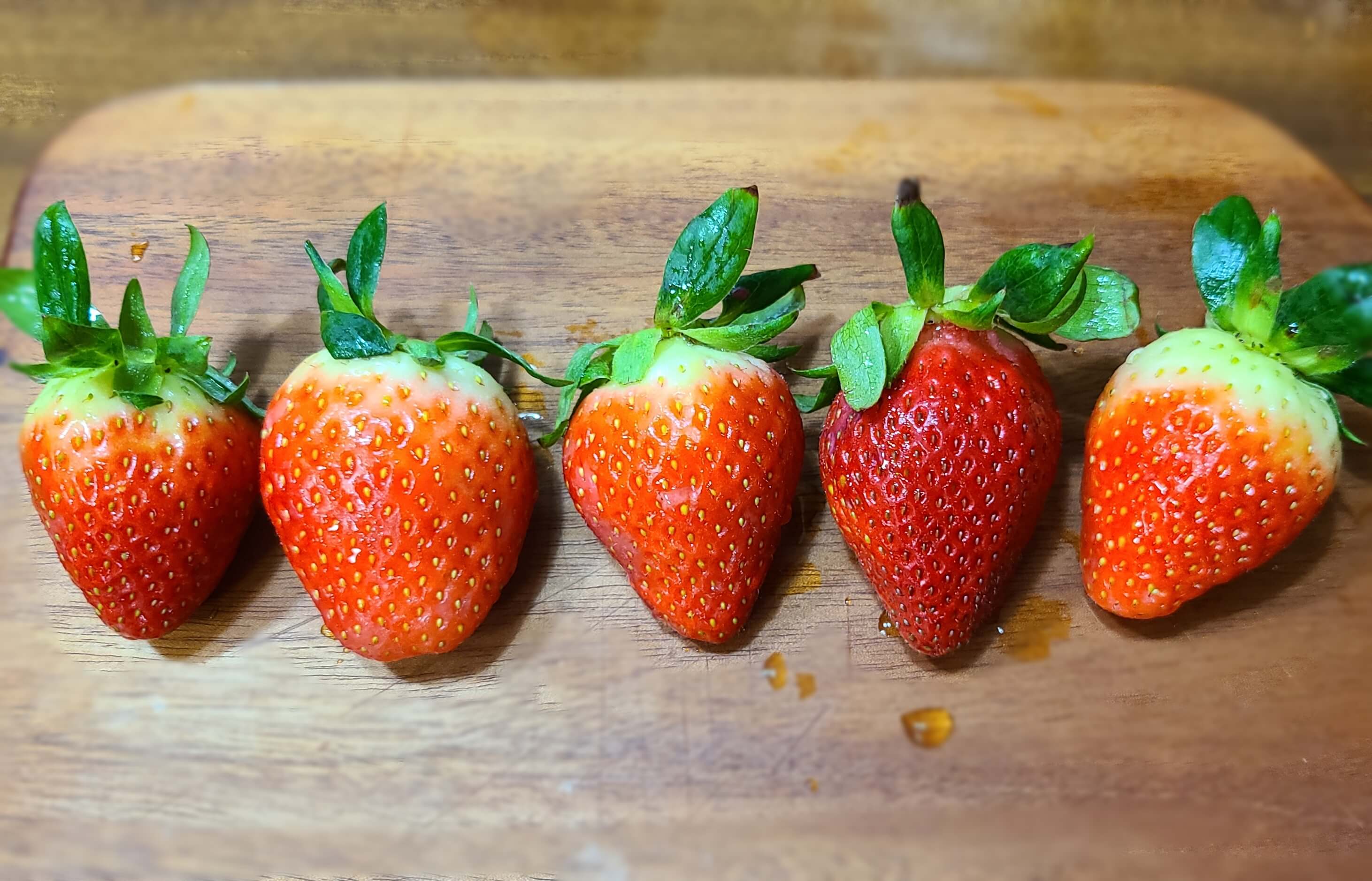 - 딸기의 경우 종자의 결실을 인위적으로 제한하면 결실하지 못한 쪽의 과일은 비대가 억제되어 기형 과일이 됩니다.